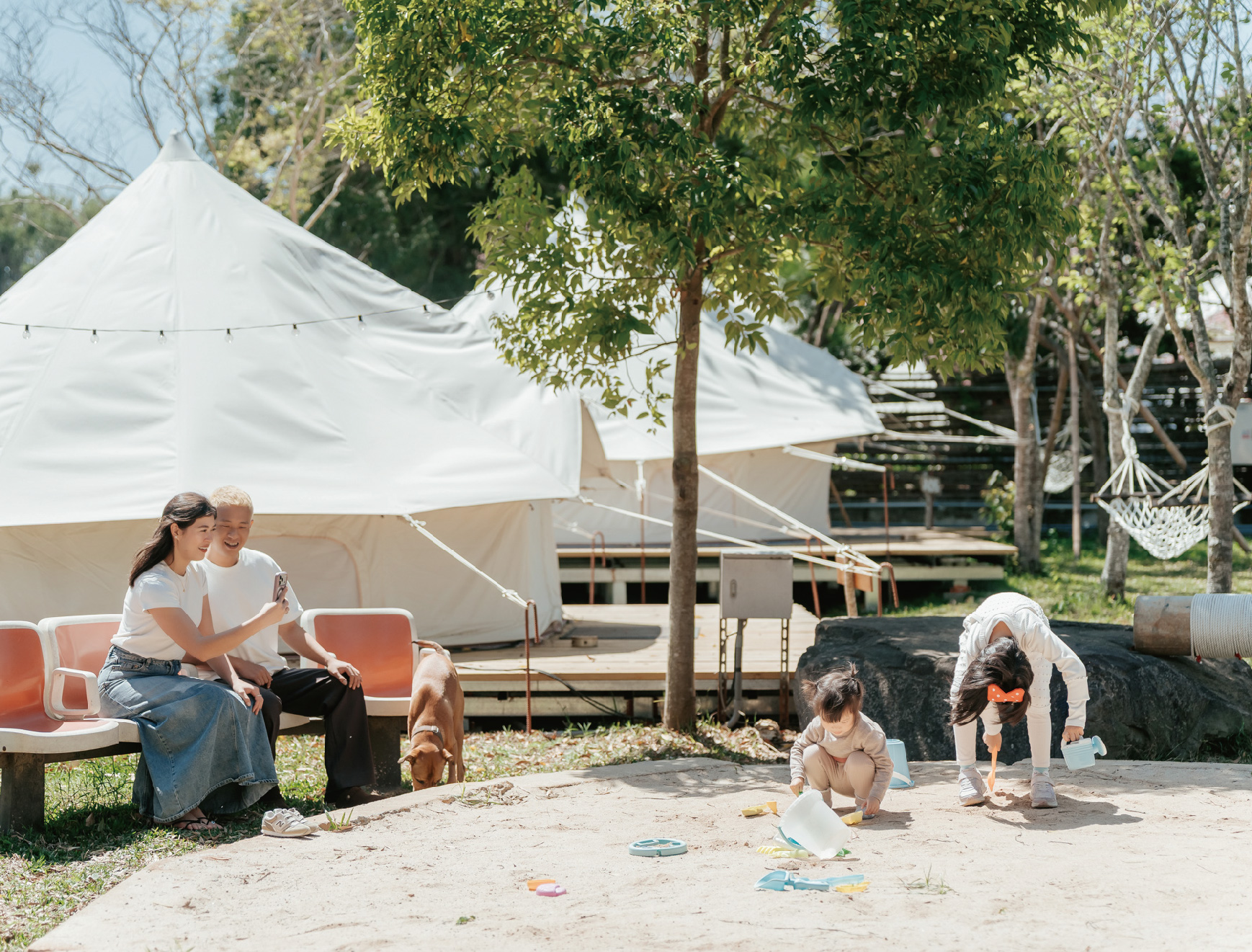 在樹影之間,以大面積綠意、自然風為主題,將露營的輕鬆與日常的小確幸一次收進場域裡。
