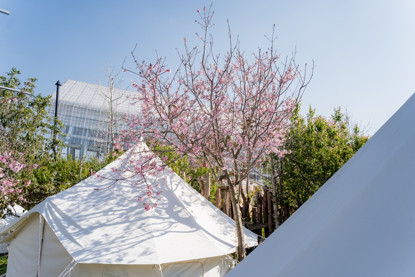 在樹影之間,以大面積綠意、自然風為主題,將露營的輕鬆與日常的小確幸一次收進場域裡。